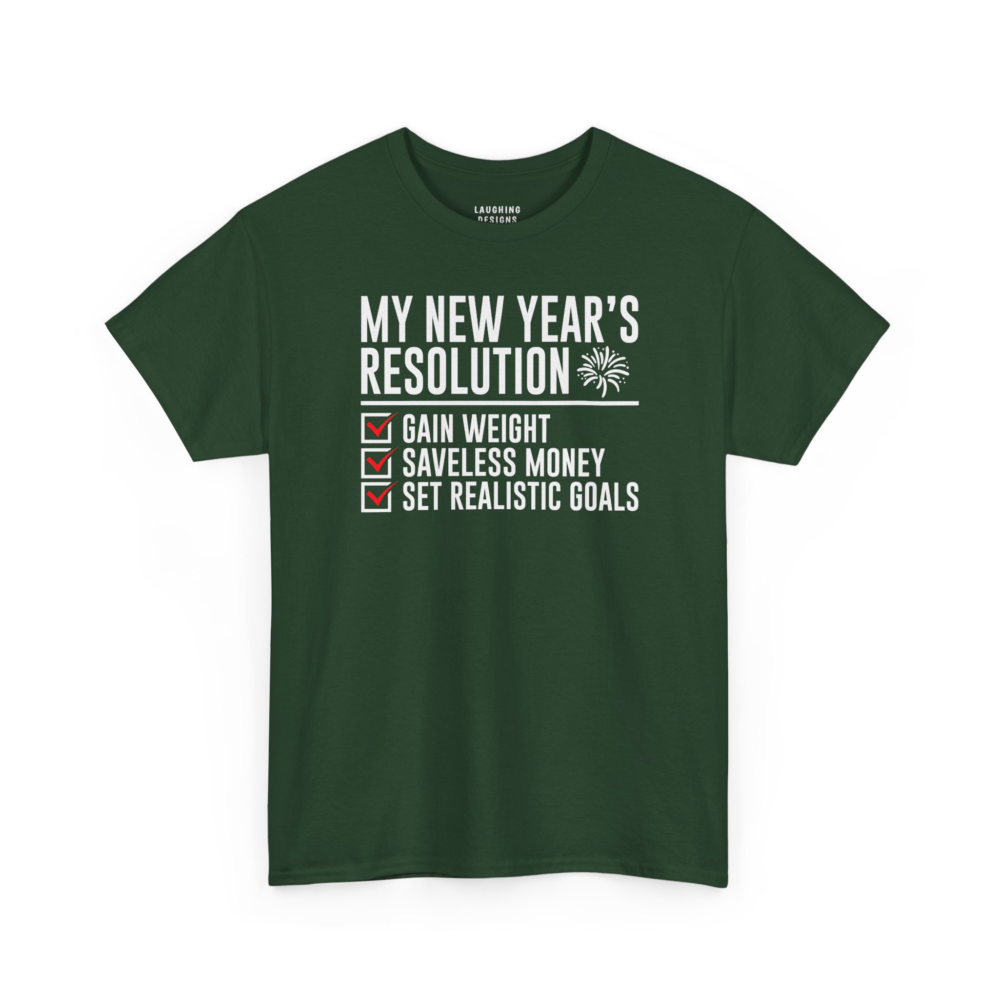 Finally, a list you can actually stick to. This Funny New Year’s Resolution T-Shirt celebrates the art of setting the bar comfortably low.