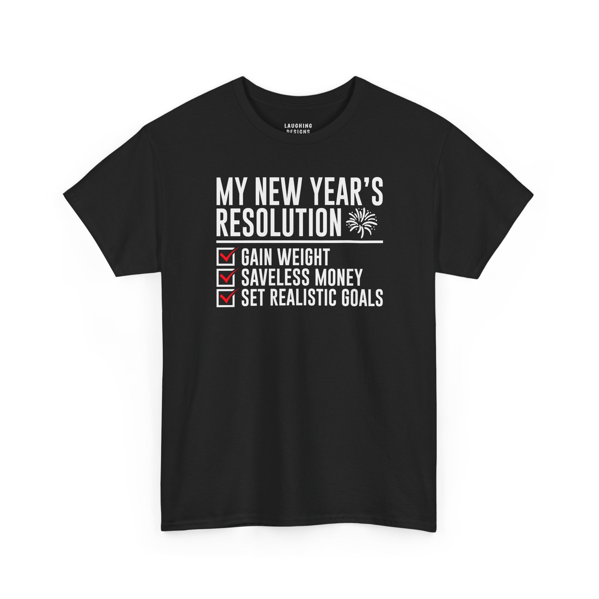 Funny New Year’s Resolution T-Shirt | “Set Realistic Goals” Checklist – Unisex Fit