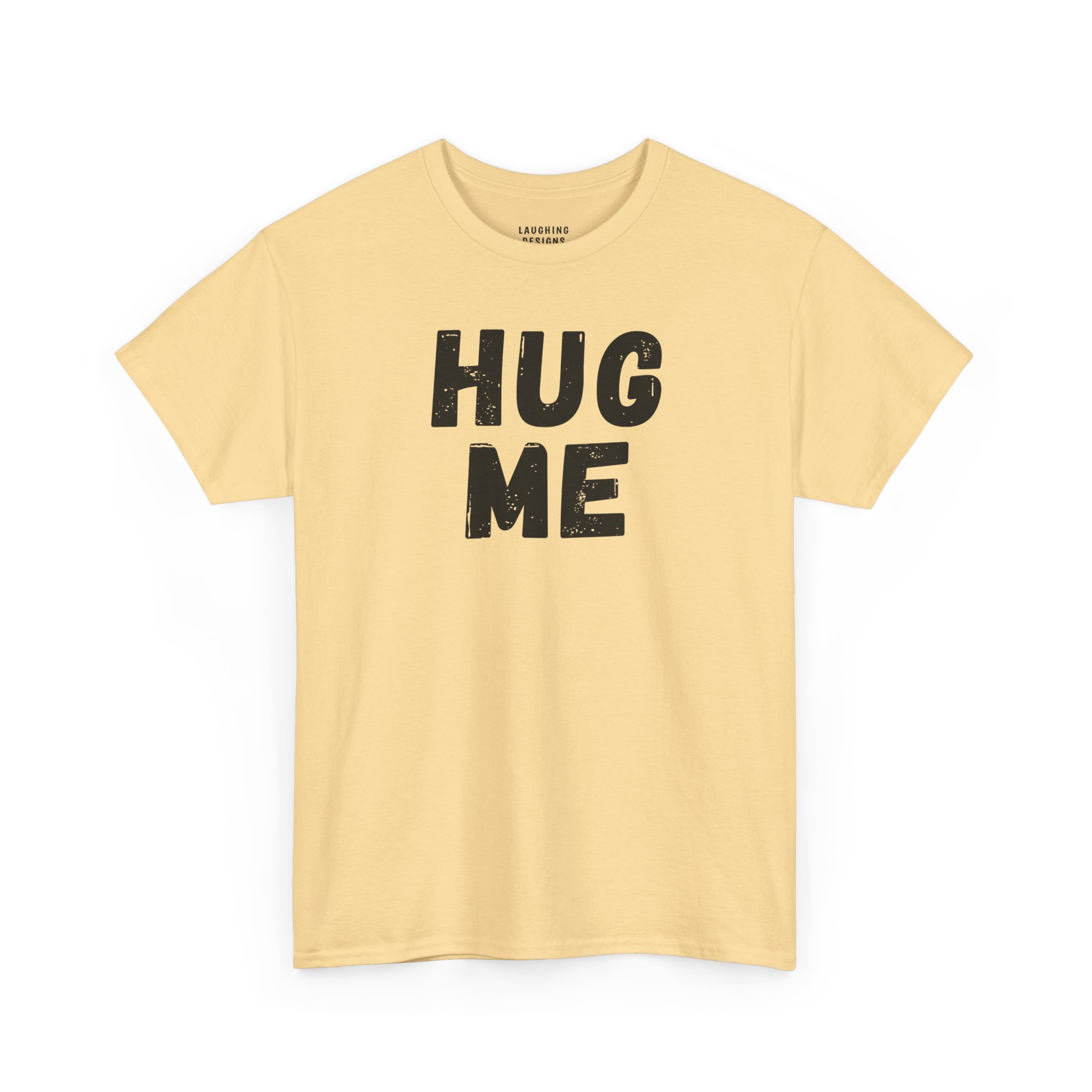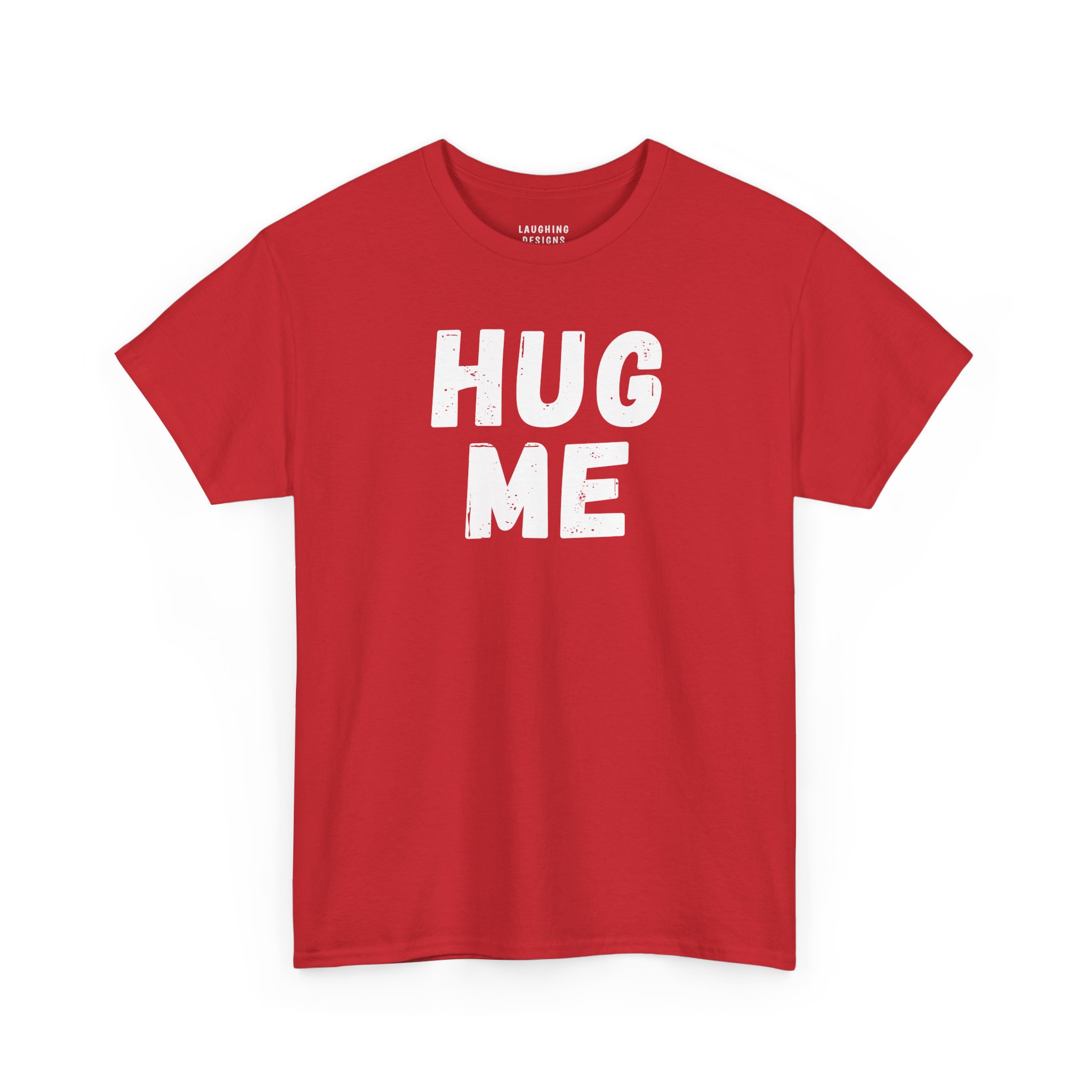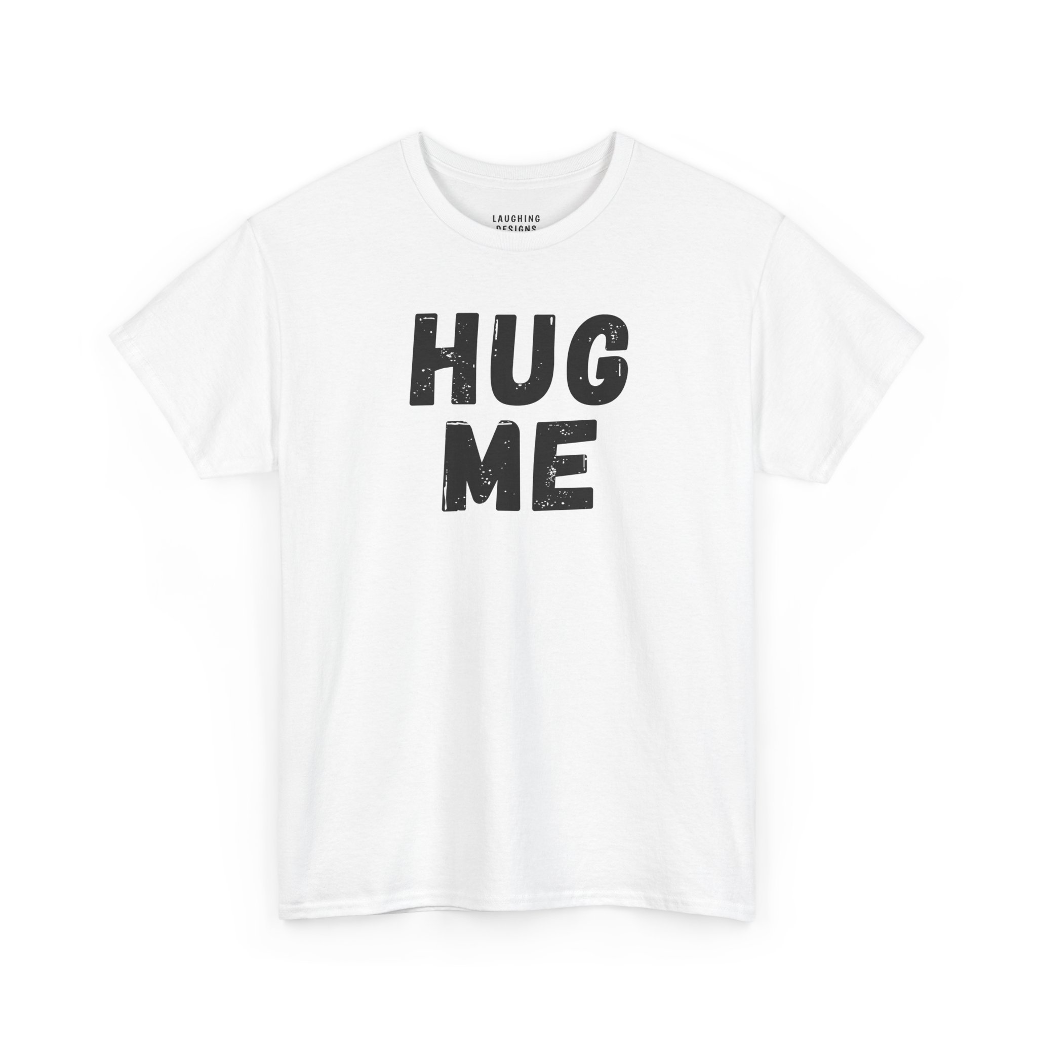 The design features massive, distressed black typography that shouts “HUG ME”. It is bold, undeniable, and perfect for Valentine’s Day, National Hug Day, or just wearing around the house when you need attention.