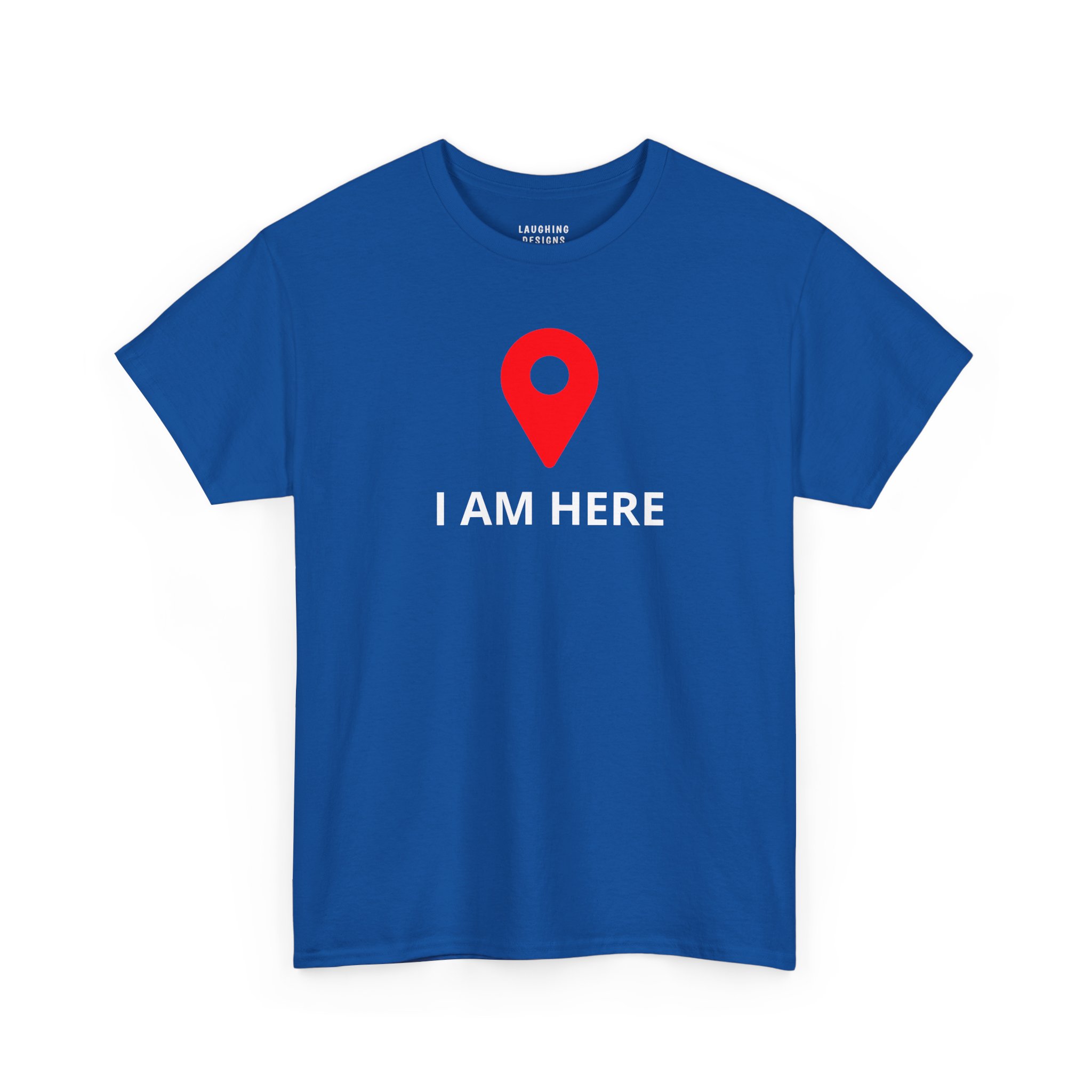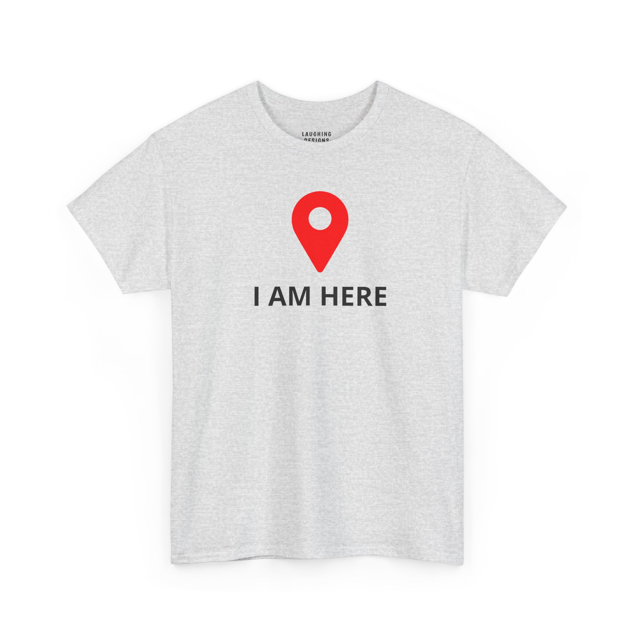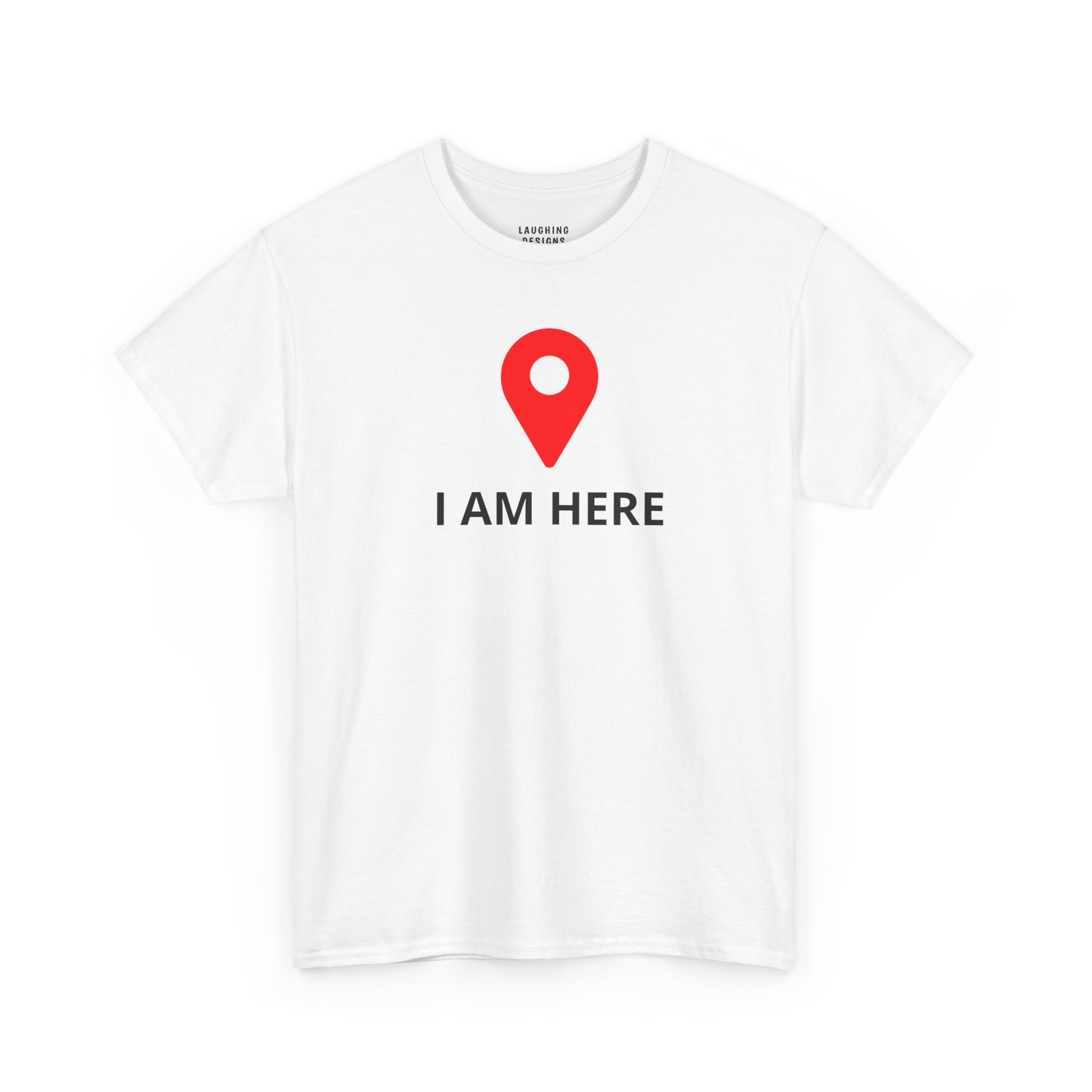 I Am Here T-Shirt | Funny GPS Map Pin Parody – Unisex Fit